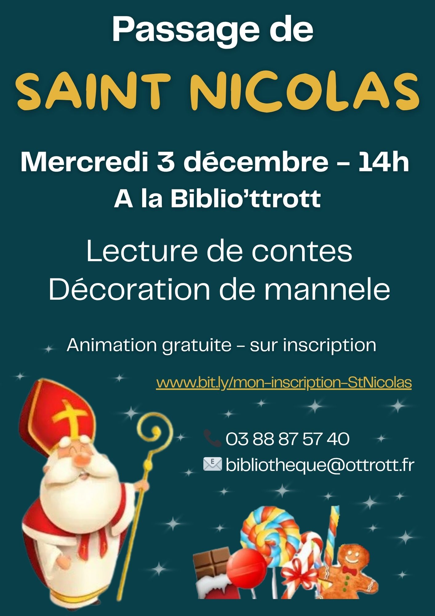 Le Saint Nicolas sera à la Bibliothèque le mercredi 3 décembre 2025 à 14h.