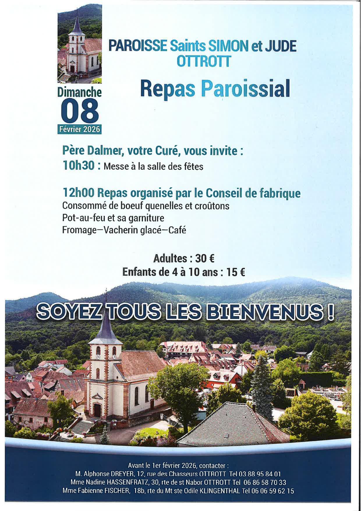 Monsieur le Curé Dalmer JIRON DEZA vous invite à participer au repas paroissial organisé le dimanche 8 février 2026 par le Conseil de Fabrique.