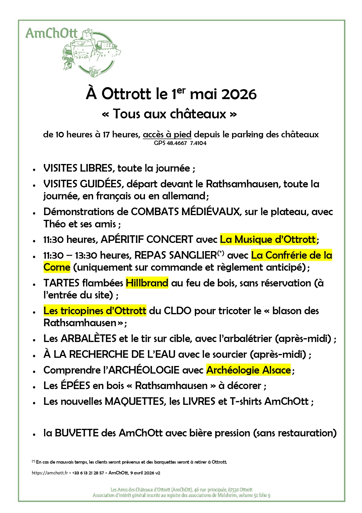 De 10 heures à 17 heures, accès à pied uniquement par le parking des châteaux. Venez nombreux avec vos enfants, avec vos amis ! Les bénévoles AmChOtt ont besoin de votre présence et de votre soutien pour continuer à pouvoir embellir le site.